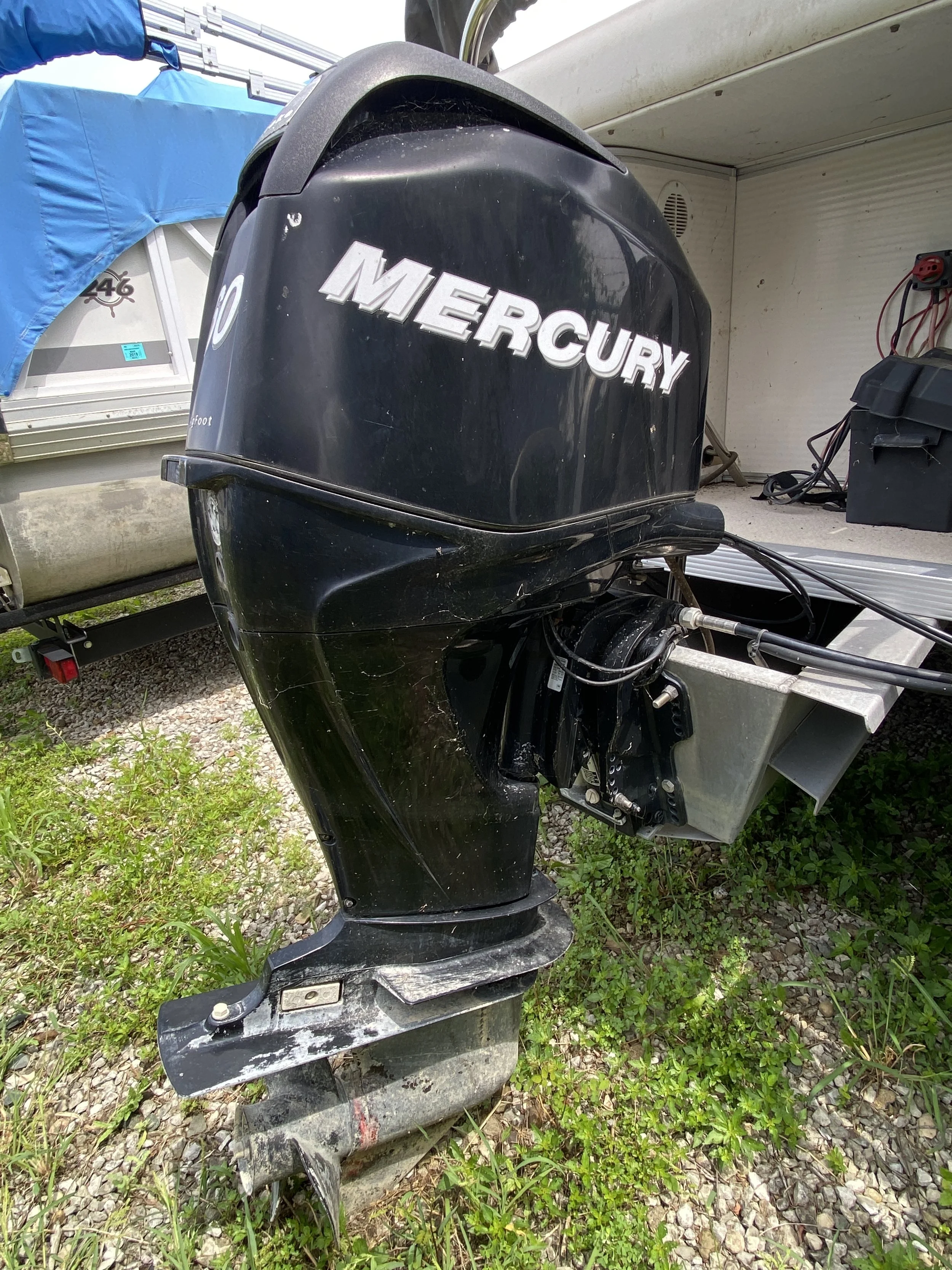 2008 Avalon Windjammer CR E 20 equipped with a 60HP Mercury BigFoot EFI 4 stroke outboard. Open floor plan with large lounge benches with storage. Capacity for 9 people or 1605 lbs. Equipped with full cover, bimini shade, removable table, moveable cupholders & stereo. Very clean & well maintained - floor had gotten wet just before pictures, dark spots are not permanent. No trailer included. Open to offers!